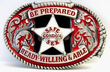 Falls Du noch eine Alternative zum Kondom in der Hosentasche suchst, hier ist sie: Die Safer-Sex-Gürtelschnalle. Gefunden bei Amazon, dort angeboten vom Piratenladen für 16,95 plus Versand.